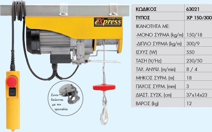Ηλεκτρικό Παλάγκο Συρματόσχοινου XP 150/300-18m EXPRESS (63021)